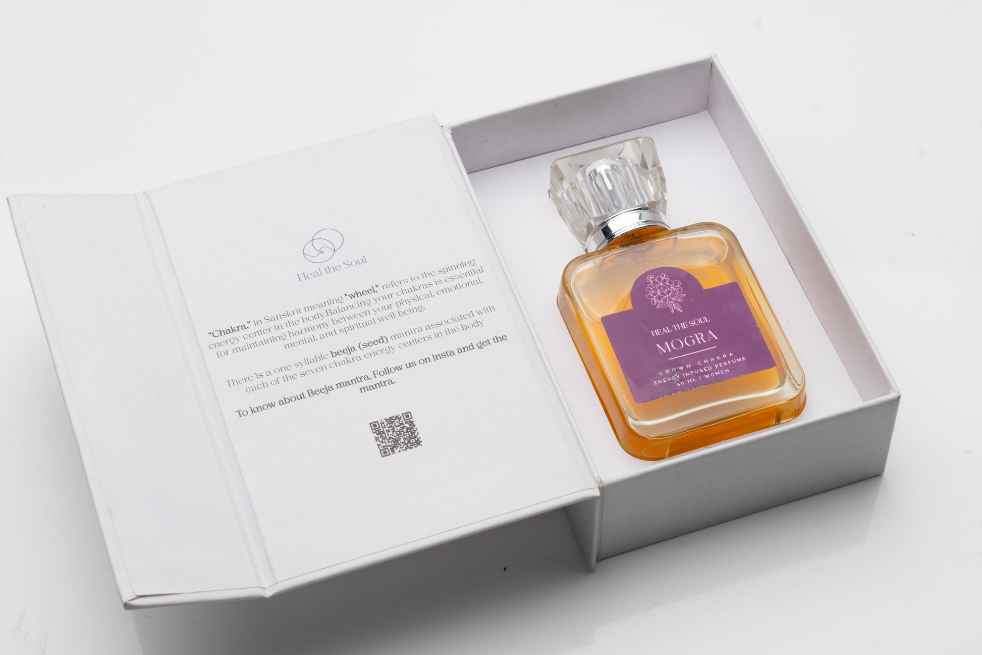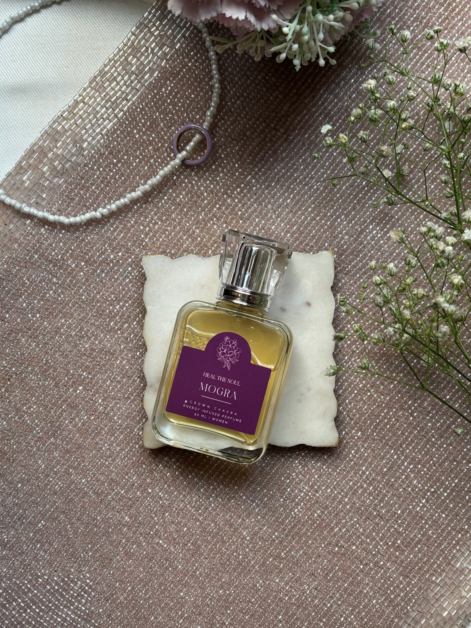 Mogra is sacred silence in a bottle—a Crown Chakra perfume handcrafted with freshly dried mogra flowers, embodying pure devotion and transcendence. Its fragrance is soft, floral, and deeply spiritual—ideal for moments of prayer, meditation, or stillness.